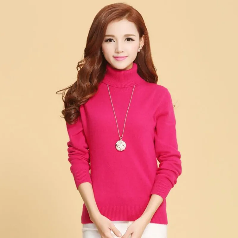 Buy Autumn winter cashmere Knitted sweater female pullover Plus size turtleneck sweater women basic Bot