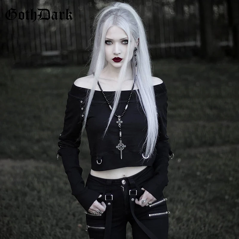 Best Goth Dark Black Patchwork Grunge Punk Gothic Sweartshirt For Women Fashion Fall 2019 Vintage Female