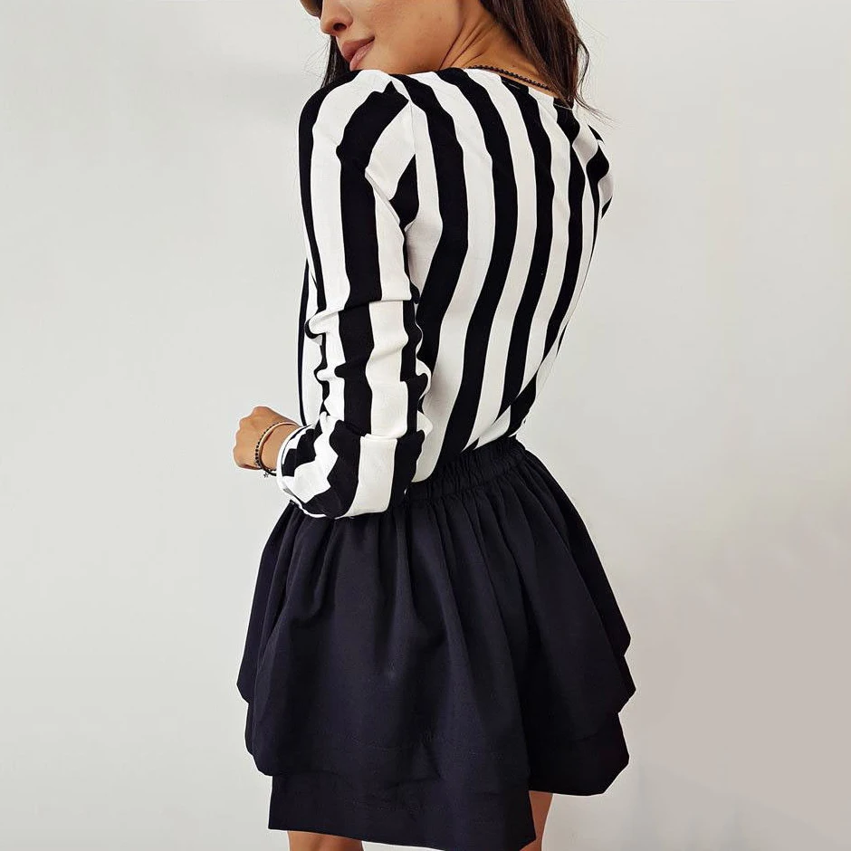 Best Summer Sexy Women Striped Shirt Black White Elegant V Neck Button Blouse OL Casual Loose Tops Vinta