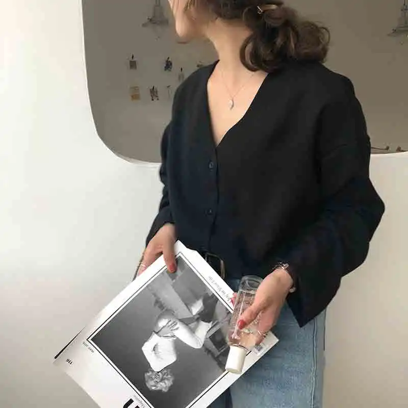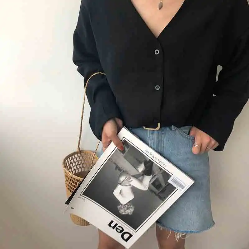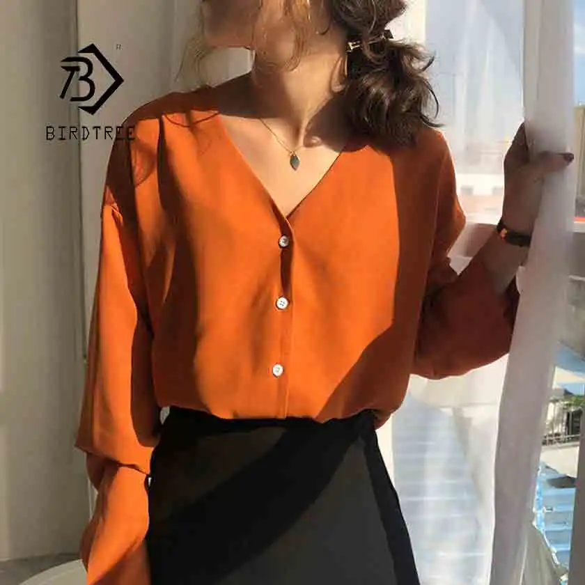 Buy 2019 Fashion Shirts Women's Solid Chic Blouses V Neck Single Button Casual Full Sleeve Office Lady