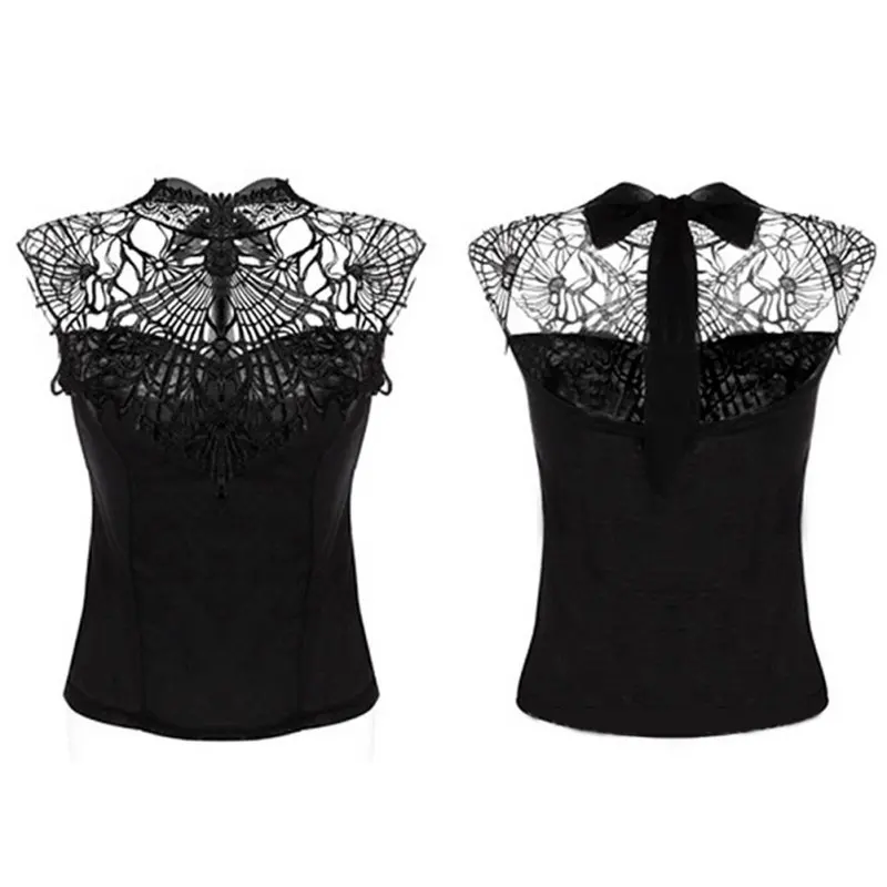 New Fashion Women Sleeveless Lace Casual Bodycorn Slim Shirt Tops Vest Hollow Turtle Neck Black White B