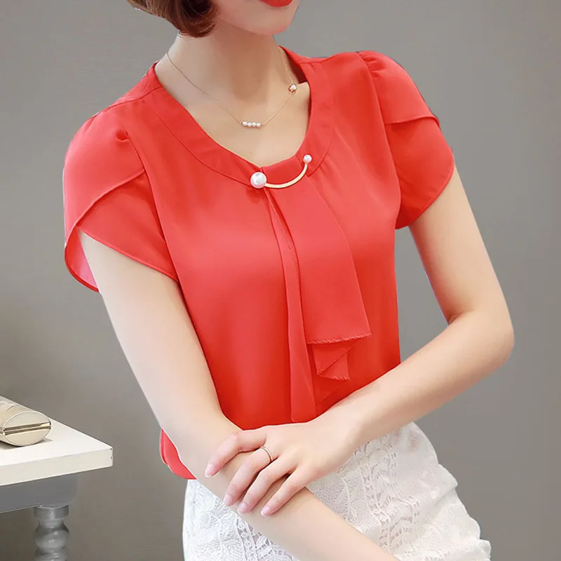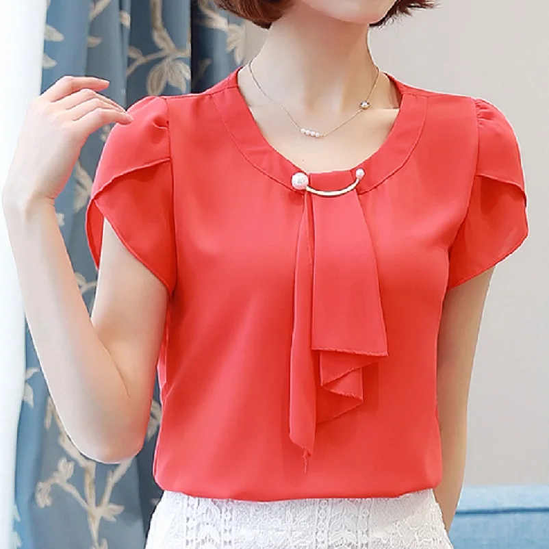 Buy Summer Blouse Women Chiffon Shirt Office Work Slim Tops Short Sleeve Shirts Korean Bow Neck Ruffle