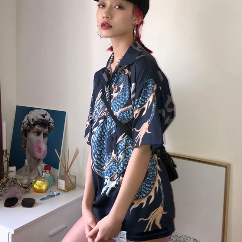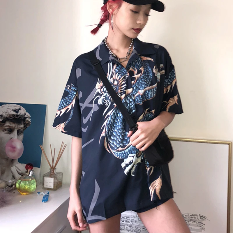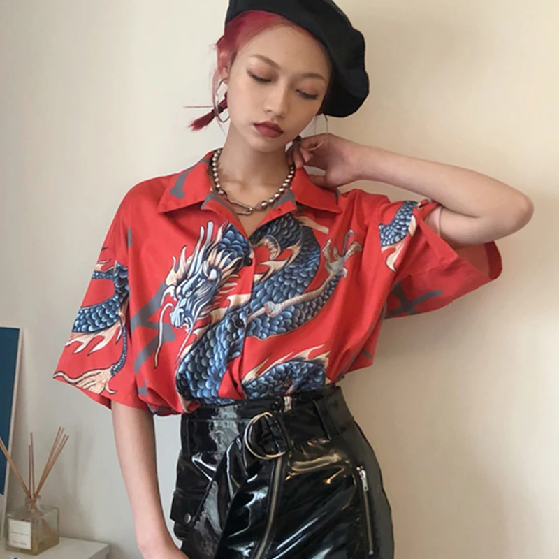 Buy Cheerart Harajuku Blouse Women Dragon Print Short Sleeve Shirt Summer Tops And Blouses Femme Street