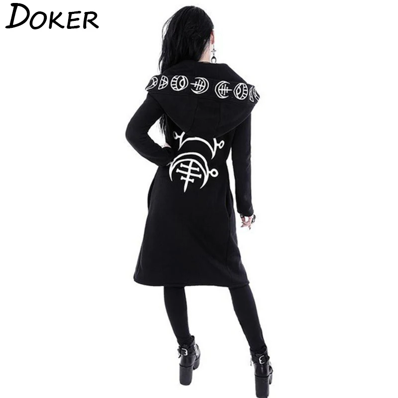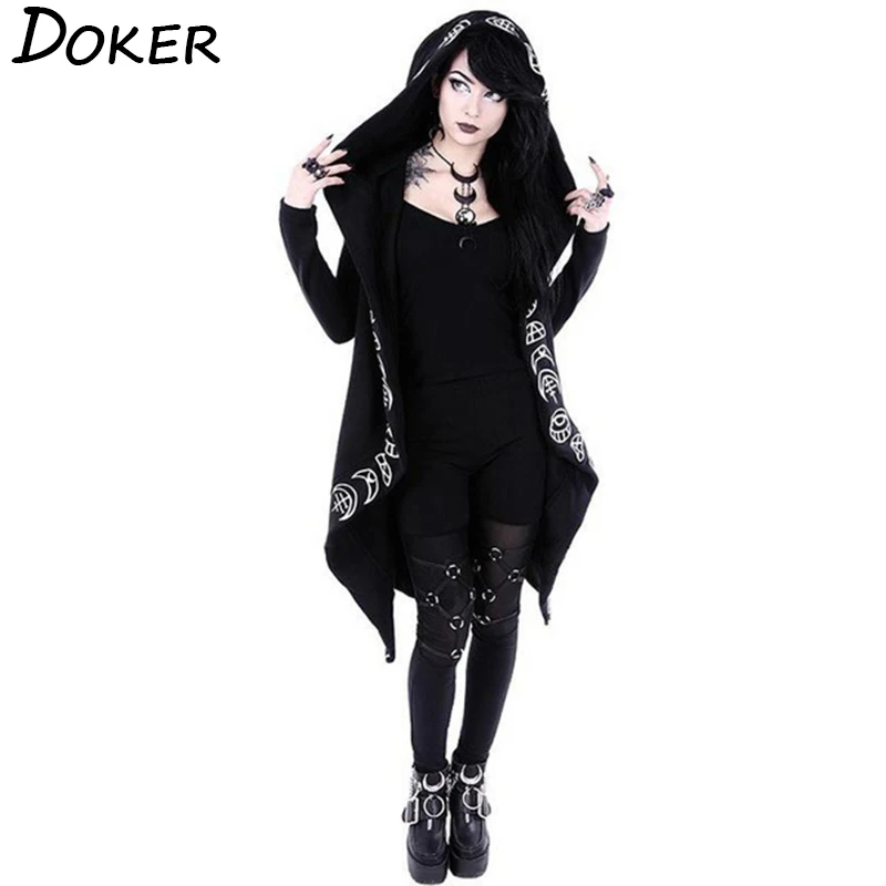 New Gothic Punk Black Long Women Hoodies Sweatshirts 2019 Autumn Moon Print Long Sleeve Hoodie Women Lo