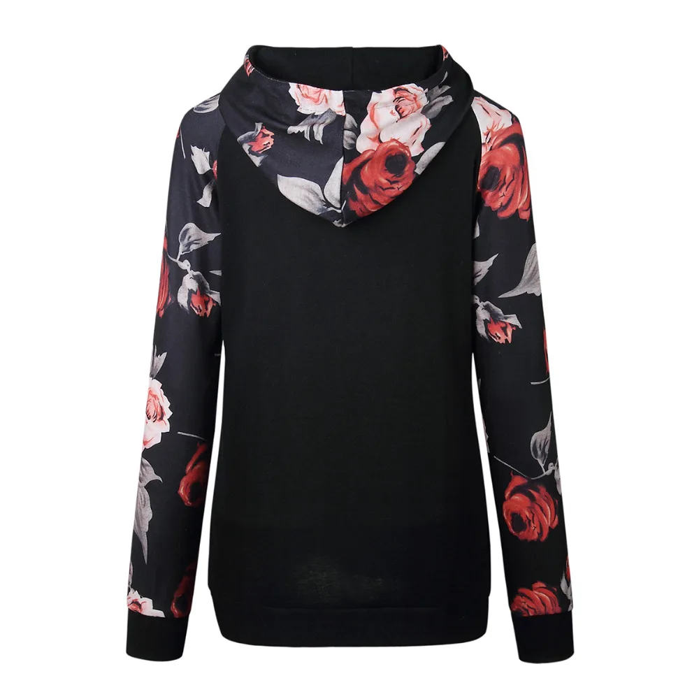 New New Fashion Women 's Print Sweatshirts Long Sleeve Breathable Cotton Hoodies Light Hoody Flower Plu