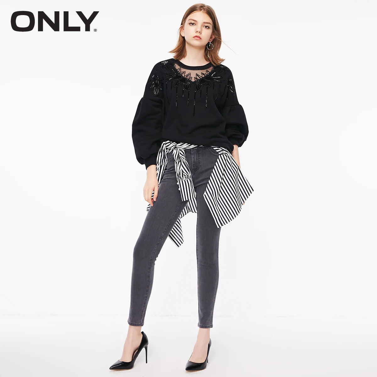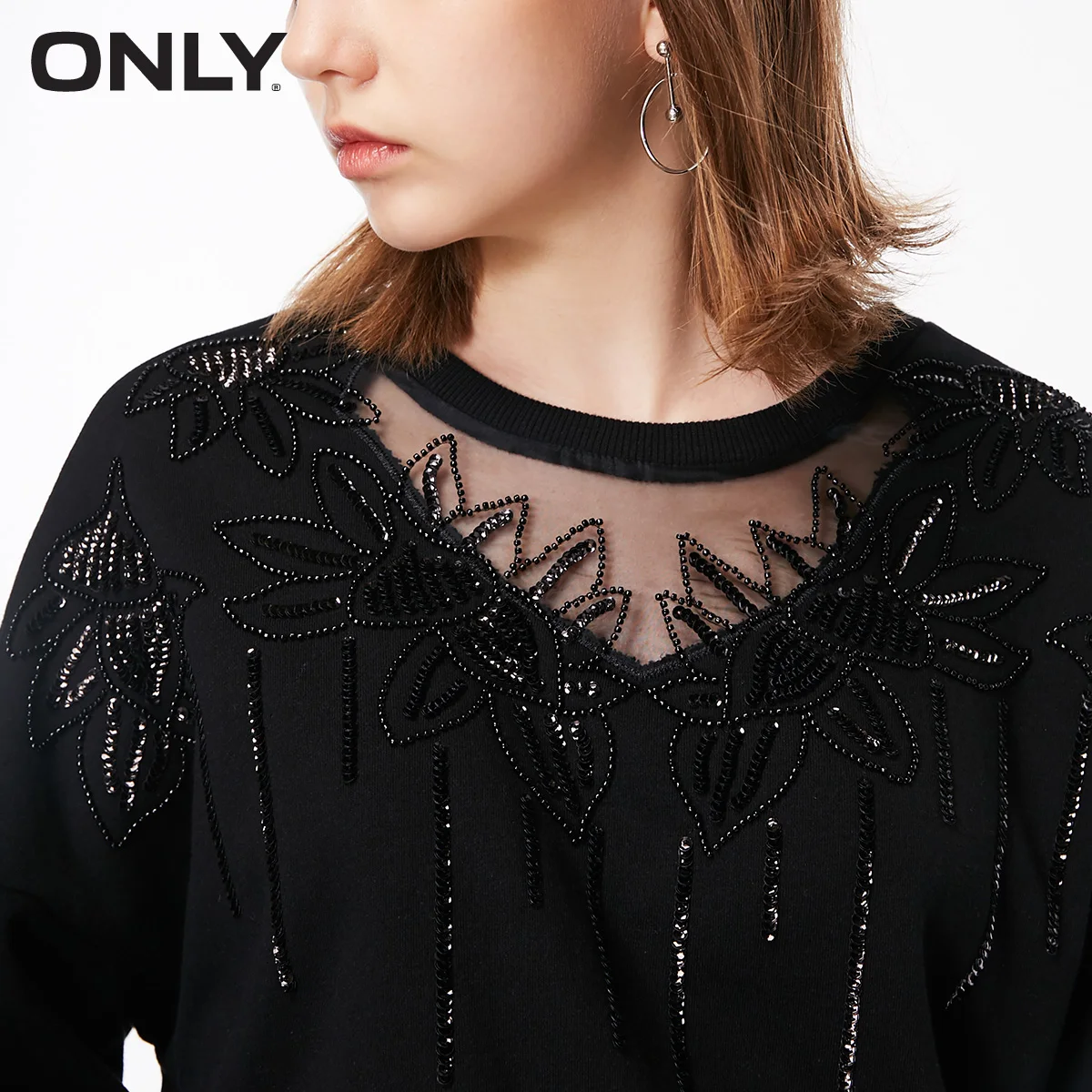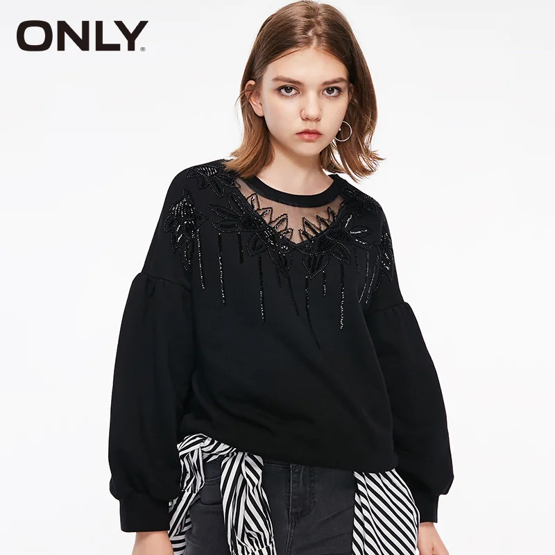 New ONLY BF Style Autumn Winter Loose Fit See-through Neckline Sweatshirt Hoodies 11839S566