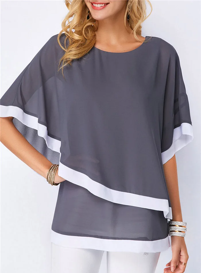 Buy S-5XL Summer Fashion Women Blouse Batwing Sleeve Irregular Spliced Long Shirt Black Blue Plus Size