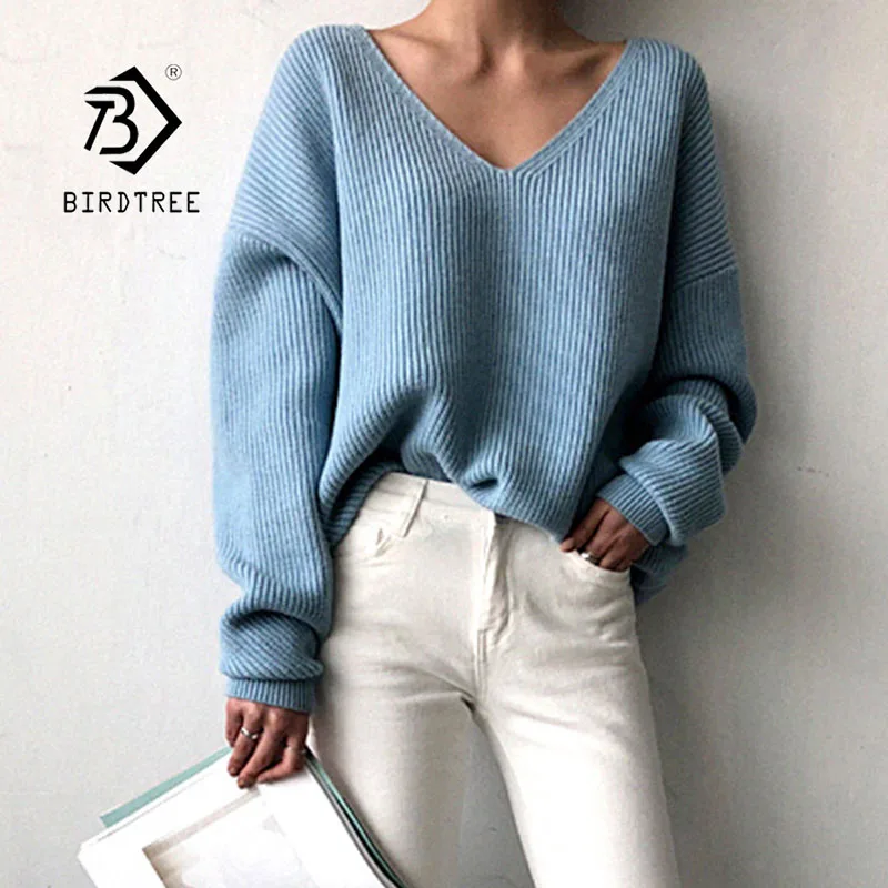 Best 2019 Autumn New Women's Pullovers Sweater Knitting V-neck Solid Irregular Hem Wild Fashion Loose Ca