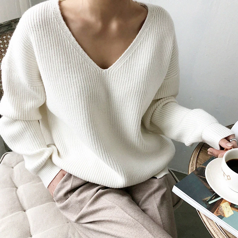 Today i want to review about 2019 Autumn New Women's Pullovers Sweater Knitting V-neck Solid Irregular Hem Wild Fashion Loose Ca. I uncover this cool product from China Online Store, best manucafturer.