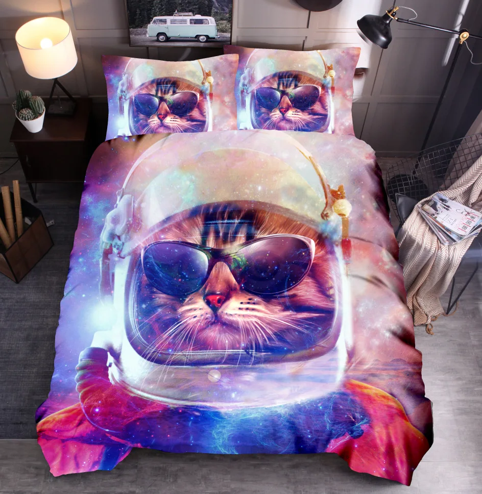 Best 2/3 Pcs 3D Cute Cat Bedding Set With Pillowcase Animals Polyester Printed Bed Linen Duvet Cover Qui