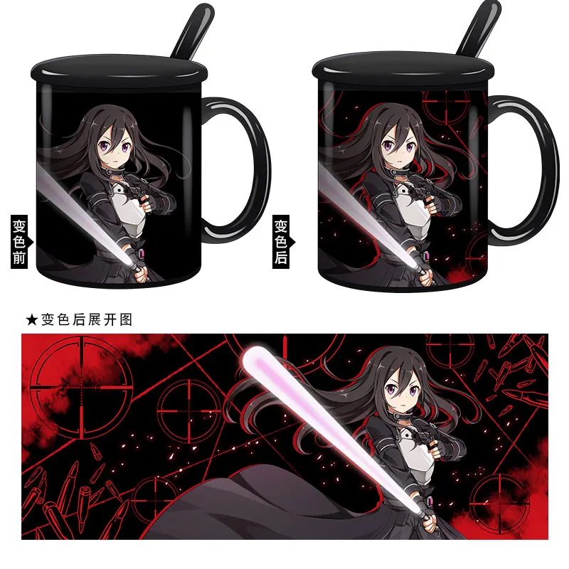 Best Anime Sword Art Online Kirigaya Kazuto Water Cup Mug Cup Discoloration Porcelain Cup Spoon + Cup li