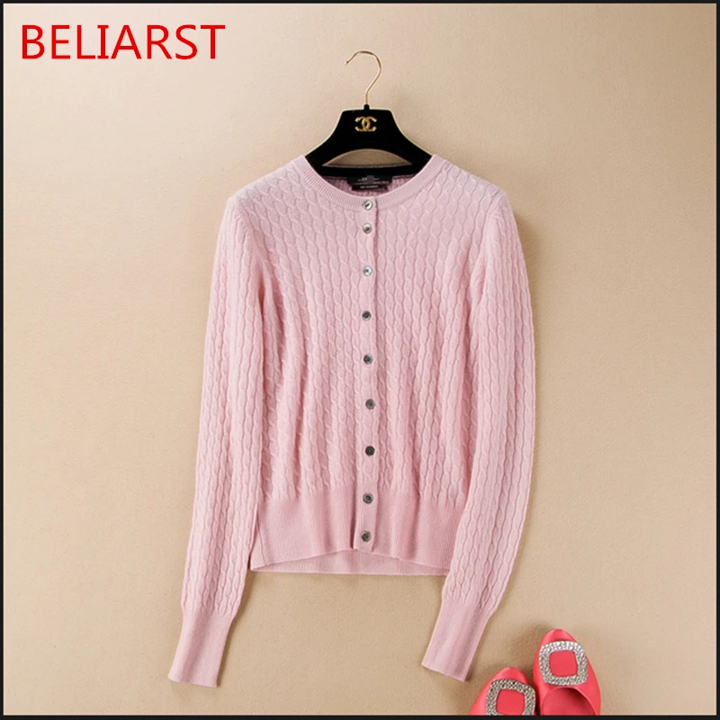 Best BELIARST Women New Autumn And Winter Female Pure Cashmere Sweater Knitted Cardigan Jacket Retro Twi