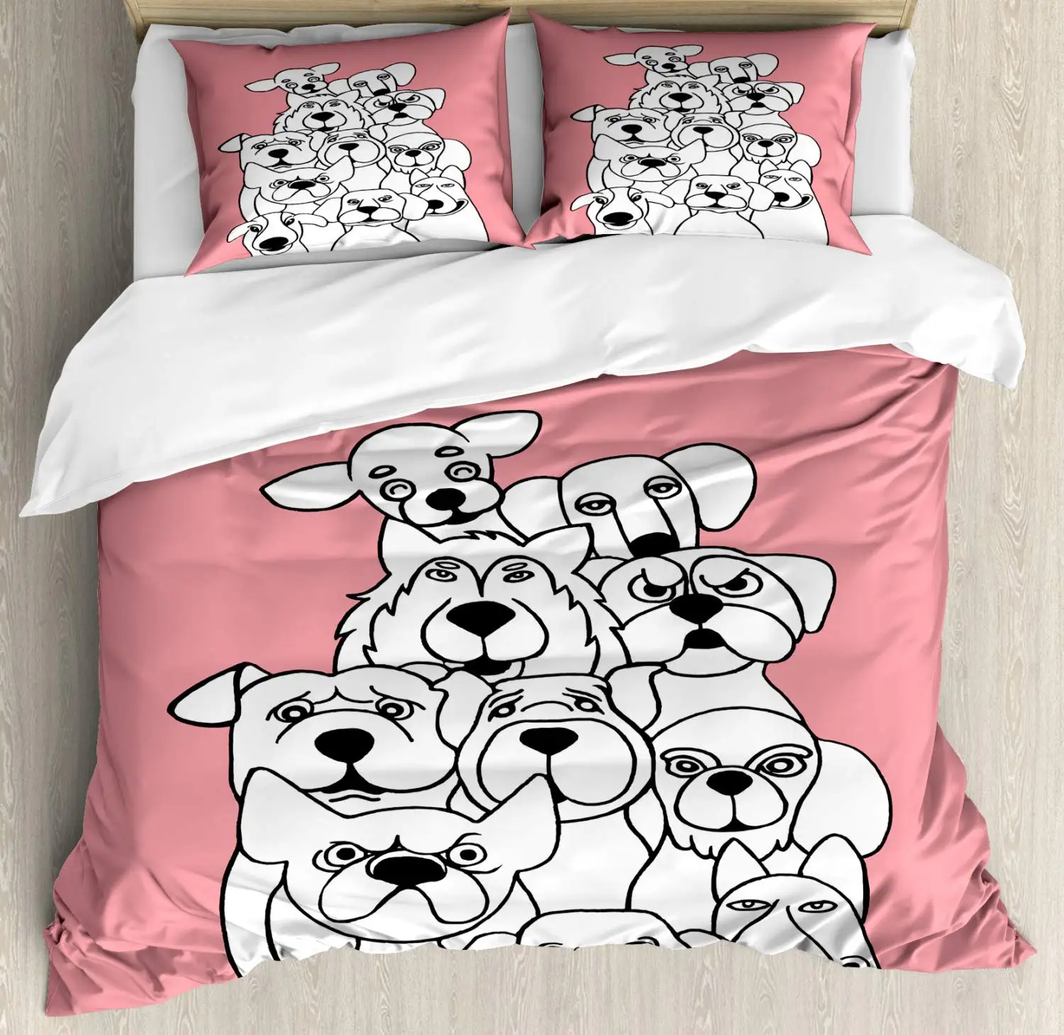 Best Dog Duvet Cover Set Hand Drawn Clutter of Dogs on a Soft Toned Background Funny Animals Decorative