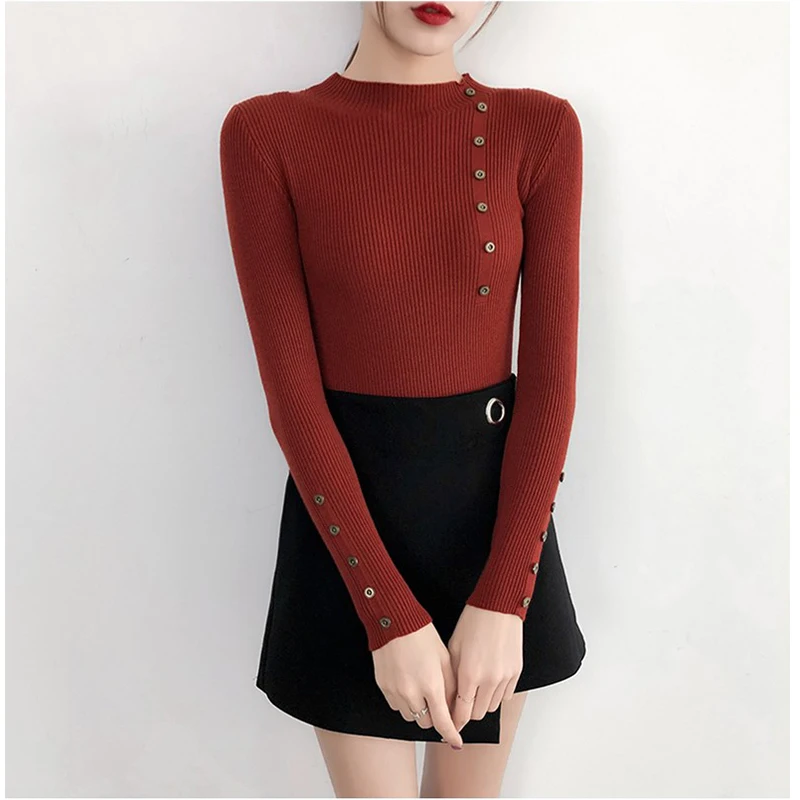 Promo 2019 TOPPICK Autumn Fashionable New Women Sweater Slim Soft Jumper Sweater Button Decoration Knitte