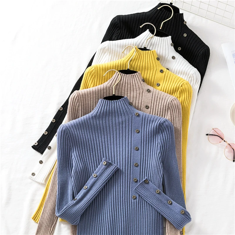 Buy 2019 TOPPICK Autumn Fashionable New Women Sweater Slim Soft Jumper Sweater Button Decoration Knitte