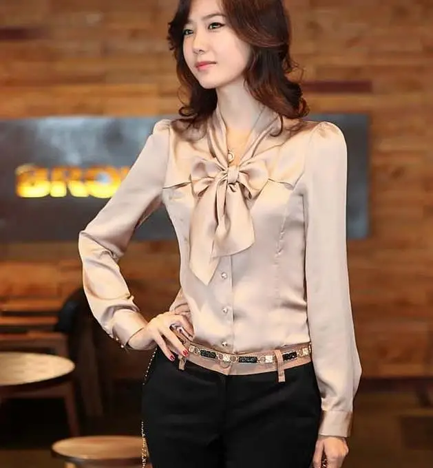 Buy 2020 Spring Long Sleeve V Neck Bow Tie Satin Shirts Women Office Work Wear OL Satin Blouses Lady Bo