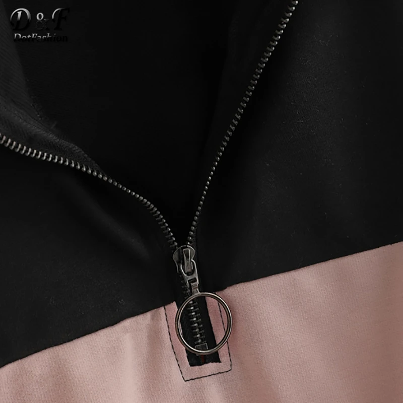 Today i want to review about Dotfashion Contrast Panel Half Zip Crop Sweatshirt Women 2019 Autumn Casual Minimalist Tops Stand C. I uncover this cool product from China Online Store, best manucafturer.