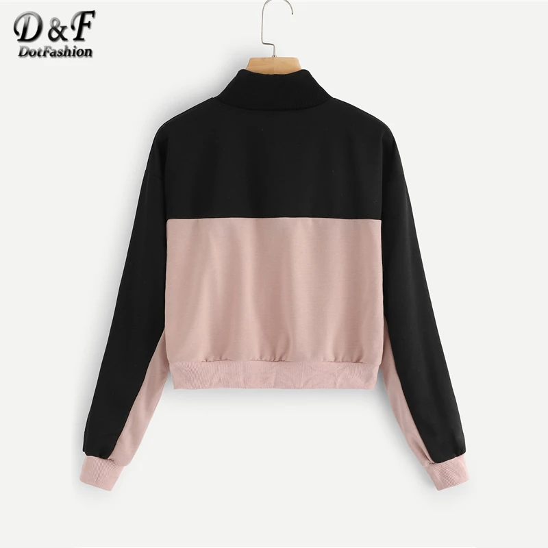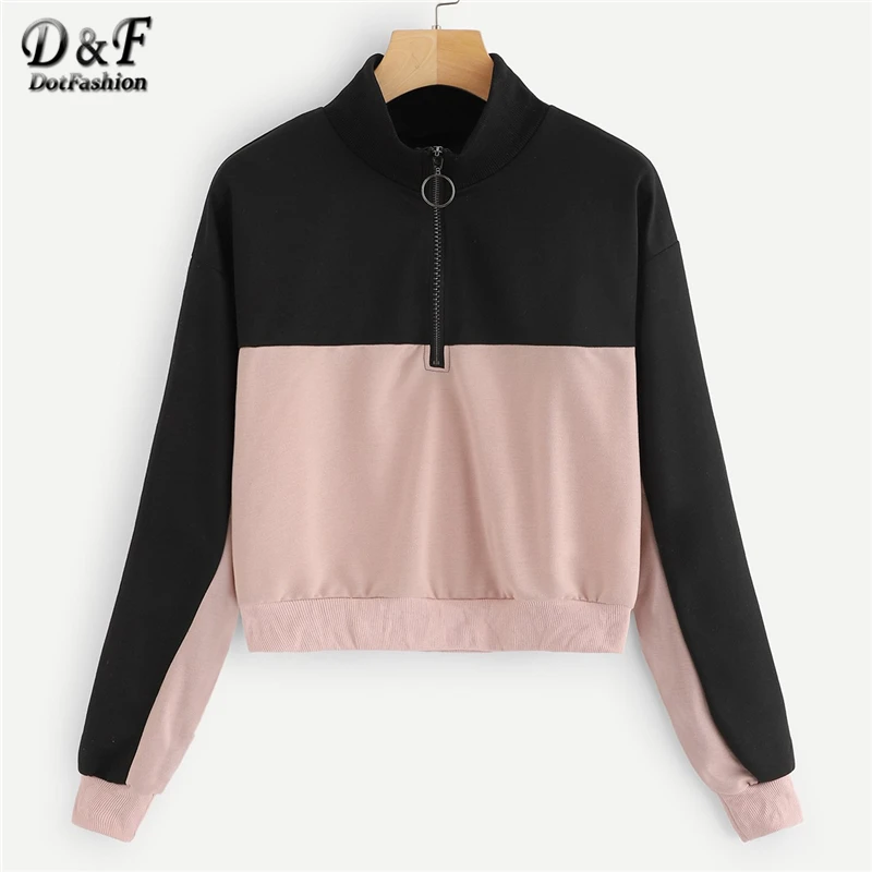 Promo Dotfashion Contrast Panel Half Zip Crop Sweatshirt Women 2019 Autumn Casual Minimalist Tops Stand C