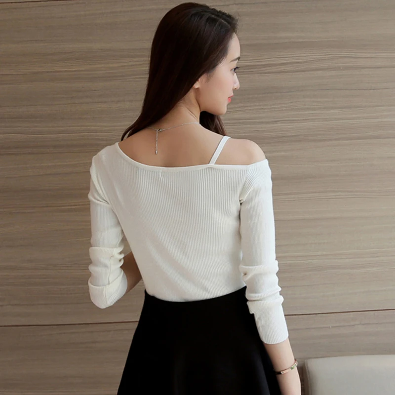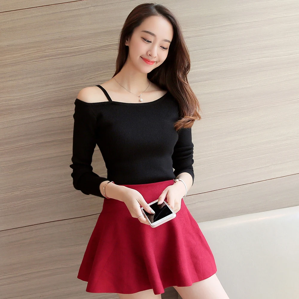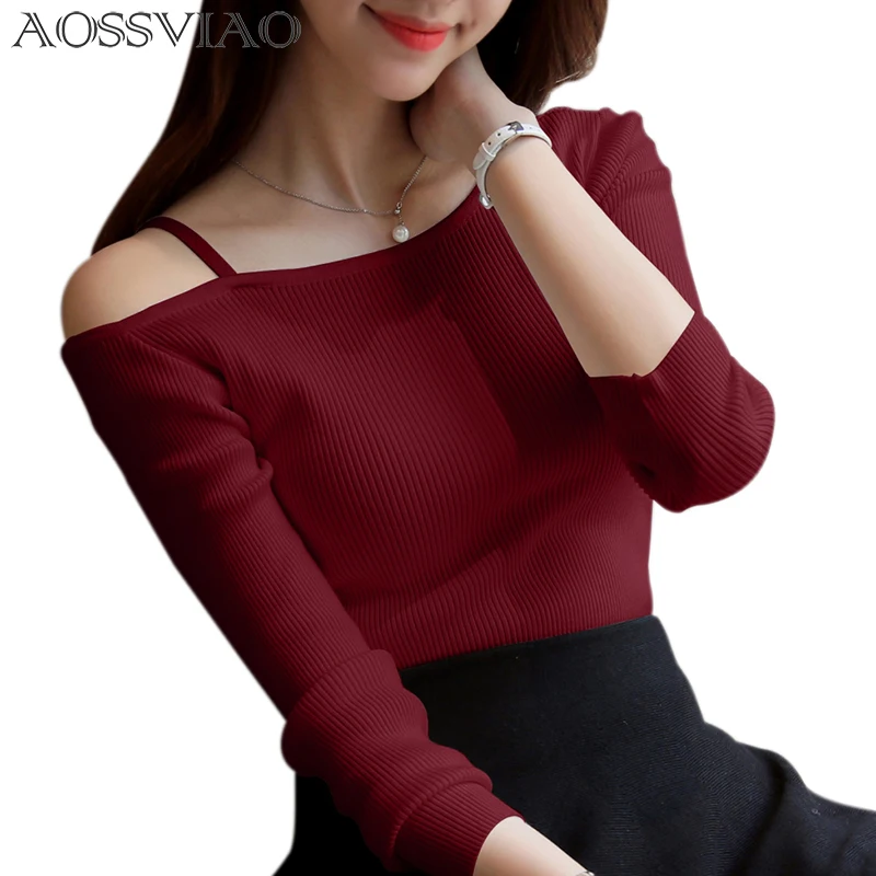 New AOSSVIAO 2020 Off Shoulder Sexy Women Long Sleeve Knitted Sweater Solid Skinny Slim Sweater Women S