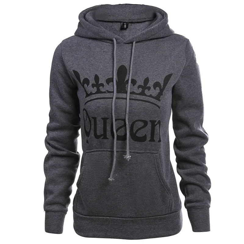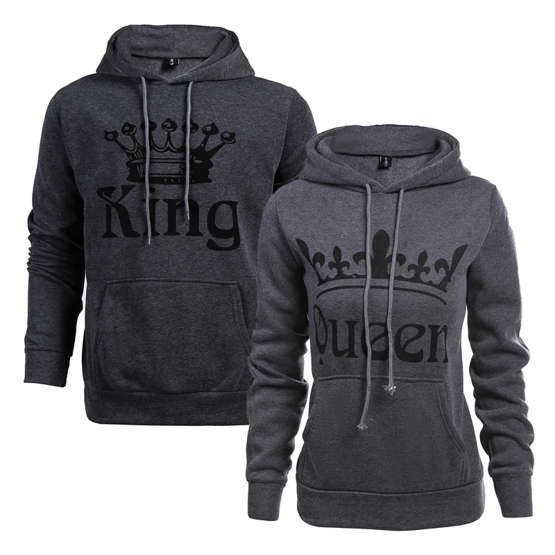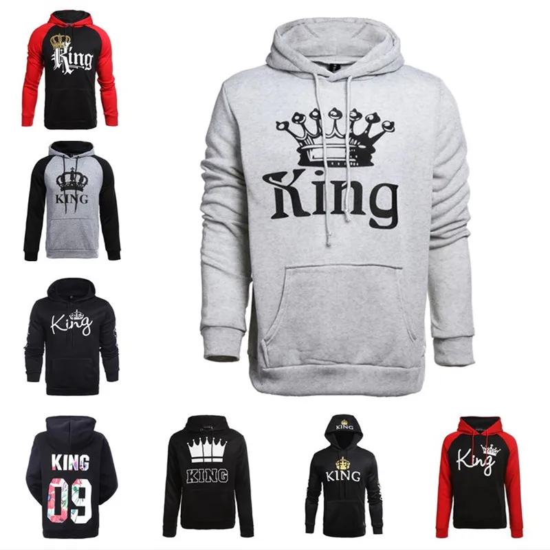 New Autumn Winter Knitted King Queen Letter Printed Couple Hoodies Hip Hop Street Wear Sweatshirts Wome