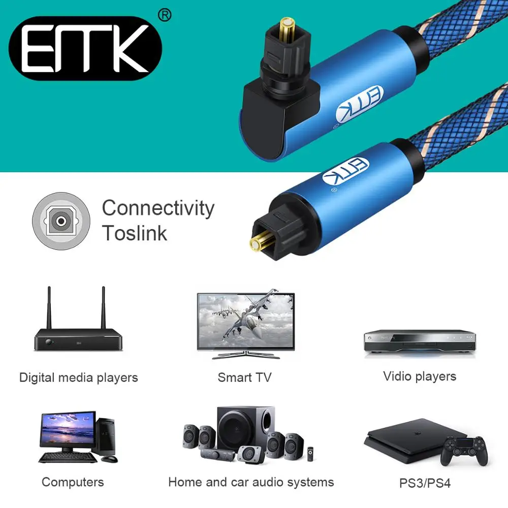 New EMK 5.1 Digital Optical Audio Cable 90 Degree Right Angle Toslink Cable SPDIF Cable 1m 2m 3m Speake
