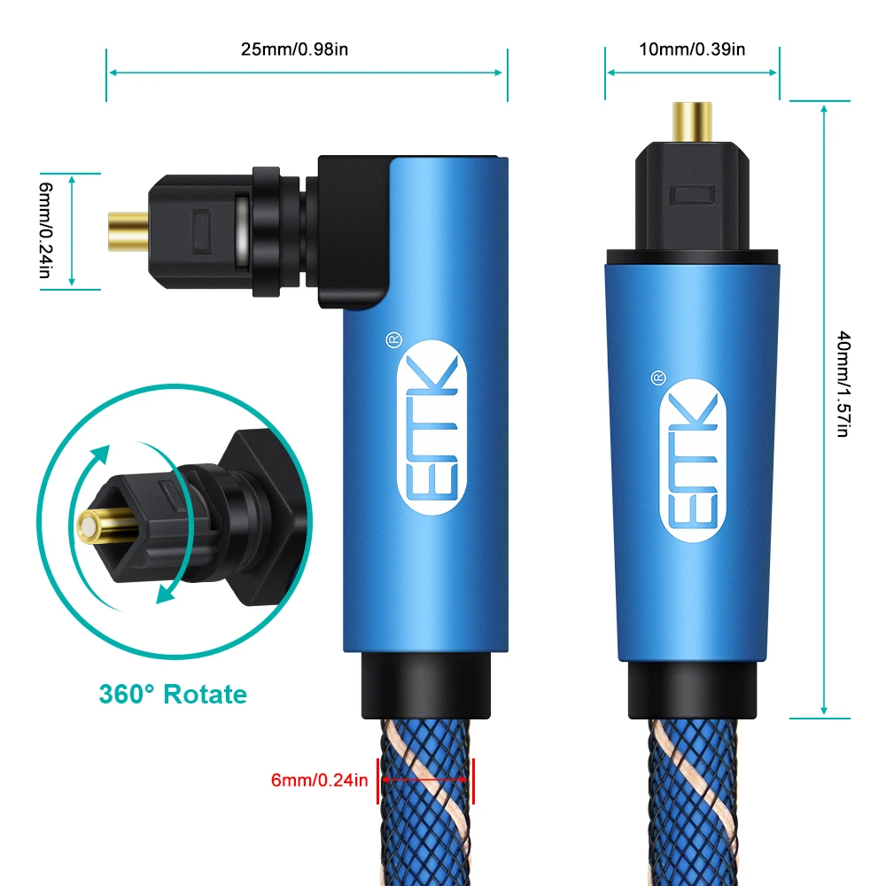 Buy EMK 5.1 Digital Optical Audio Cable 90 Degree Right Angle Toslink Cable SPDIF Cable 1m 2m 3m Speake