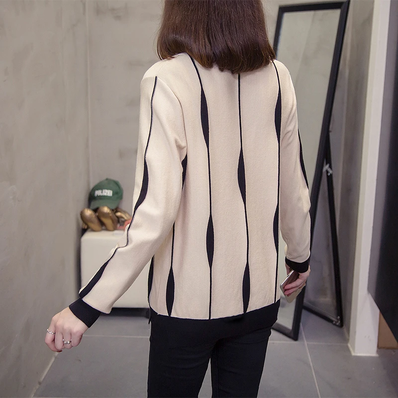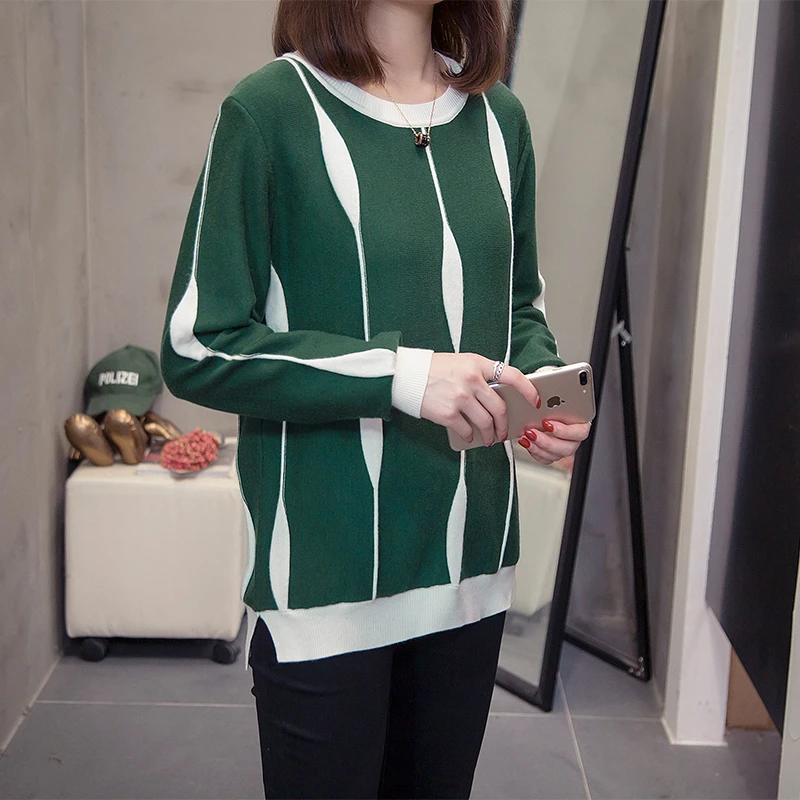 New Plus size striped patchwork pullover sweater woman korean long sleeve knitted tops oversize ladies