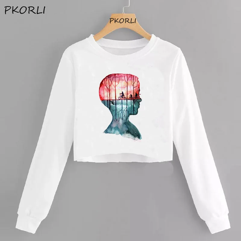 New Stranger Things cropped sweatshirt women Casual Hoodie Sweatshirts Stranger Things Hoodies lady gir