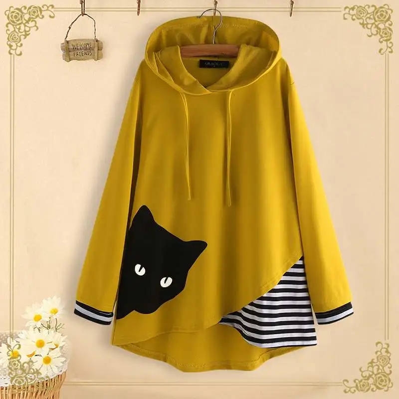 Promo M 5XL Autumn Sweatshirts Casual Hoodies Striped Patchwork Sweatshirt Women Long Sleeve Vintage Cart