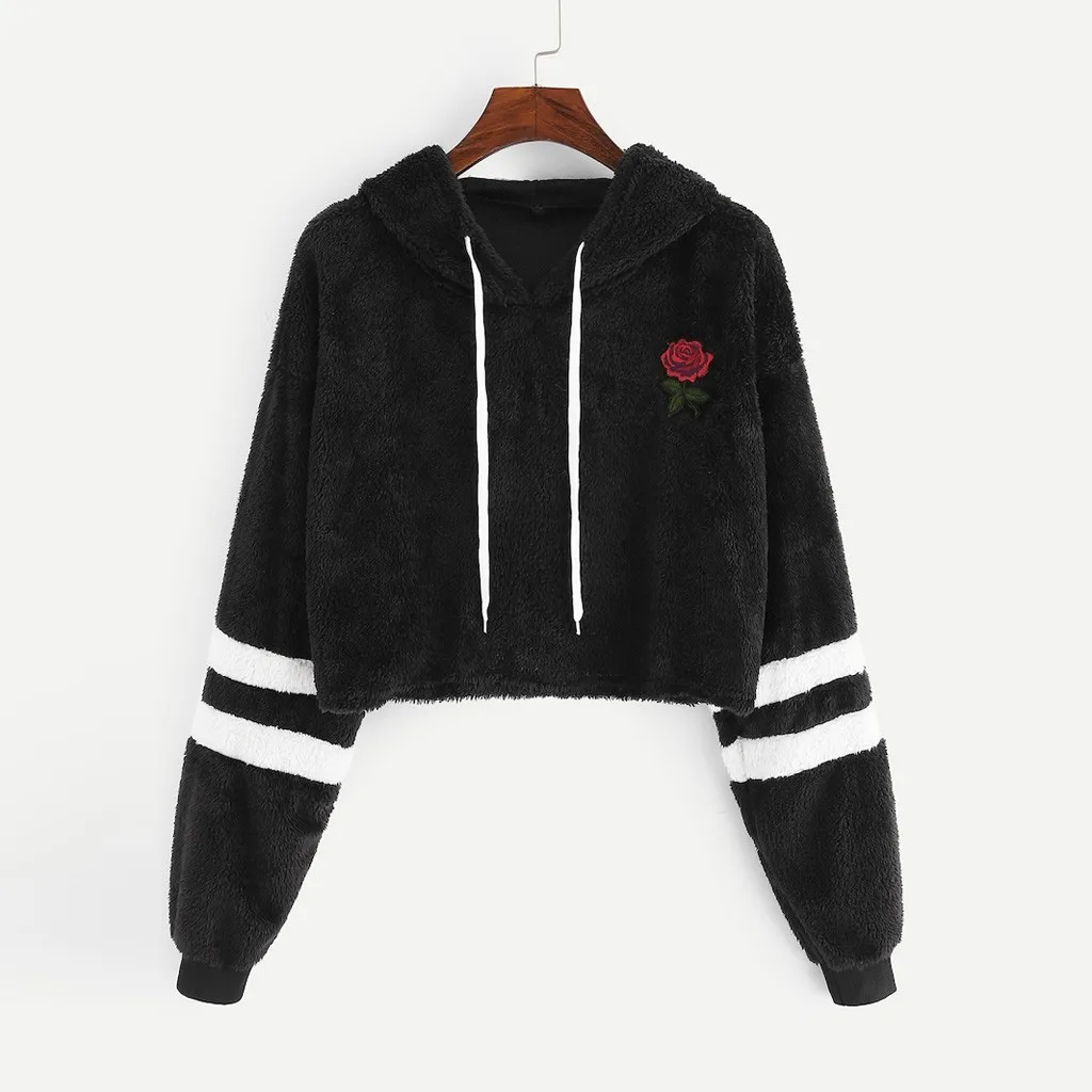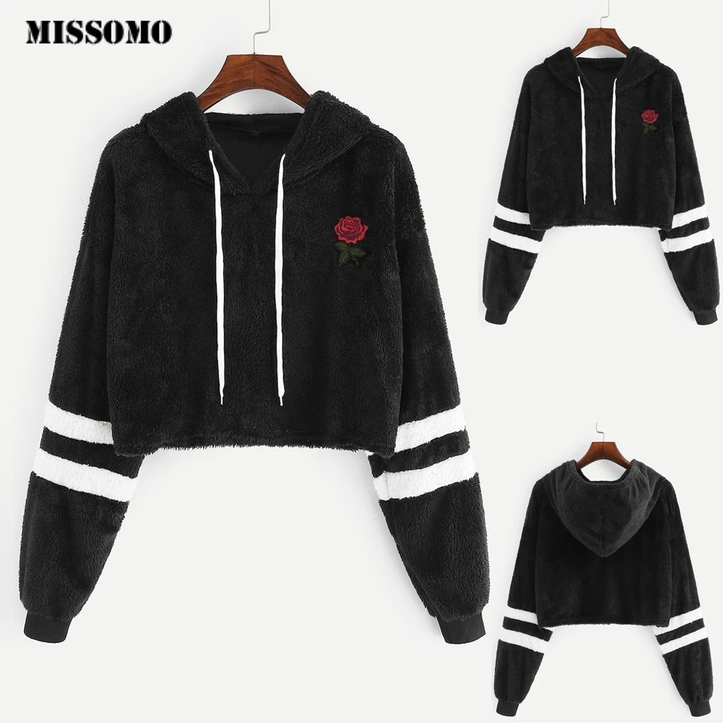 Best MISSOMO Hoodies Sweatshirts Women Casual Hoodie Sweatshirt Faux Fur long Sleeve Appliques Drawstrin