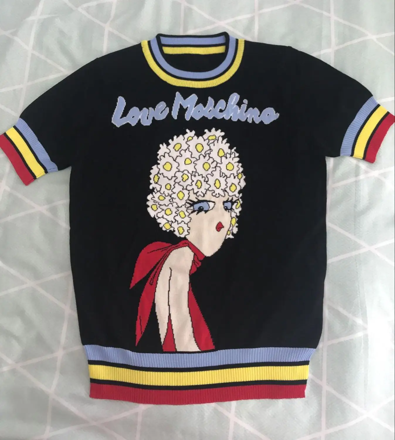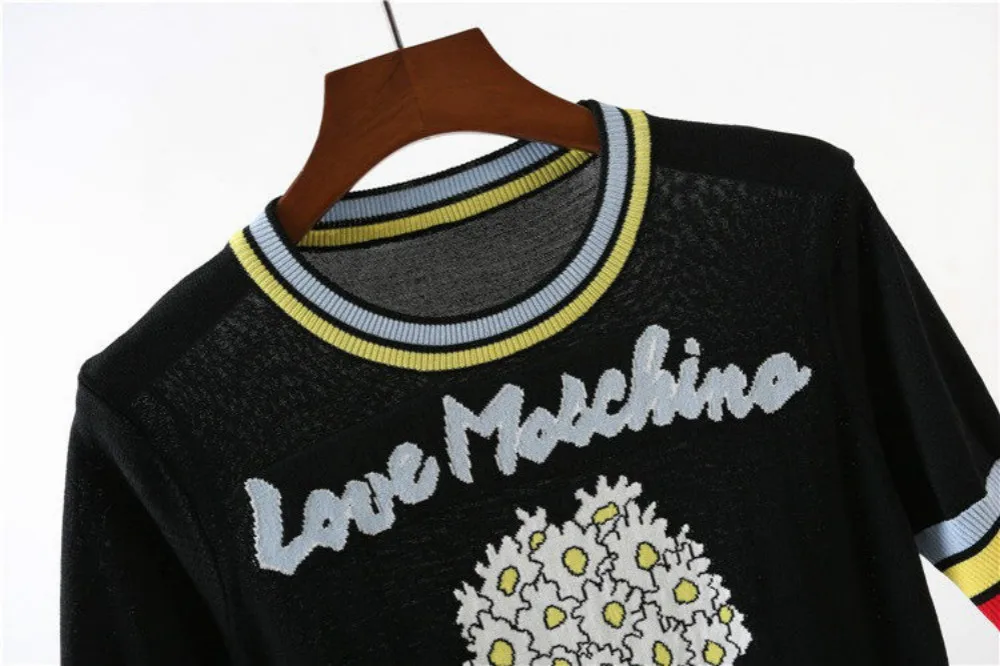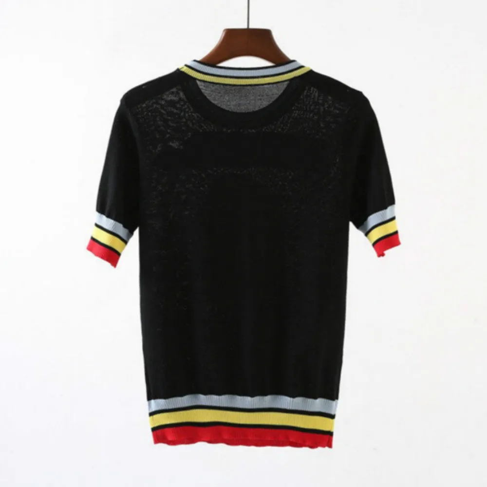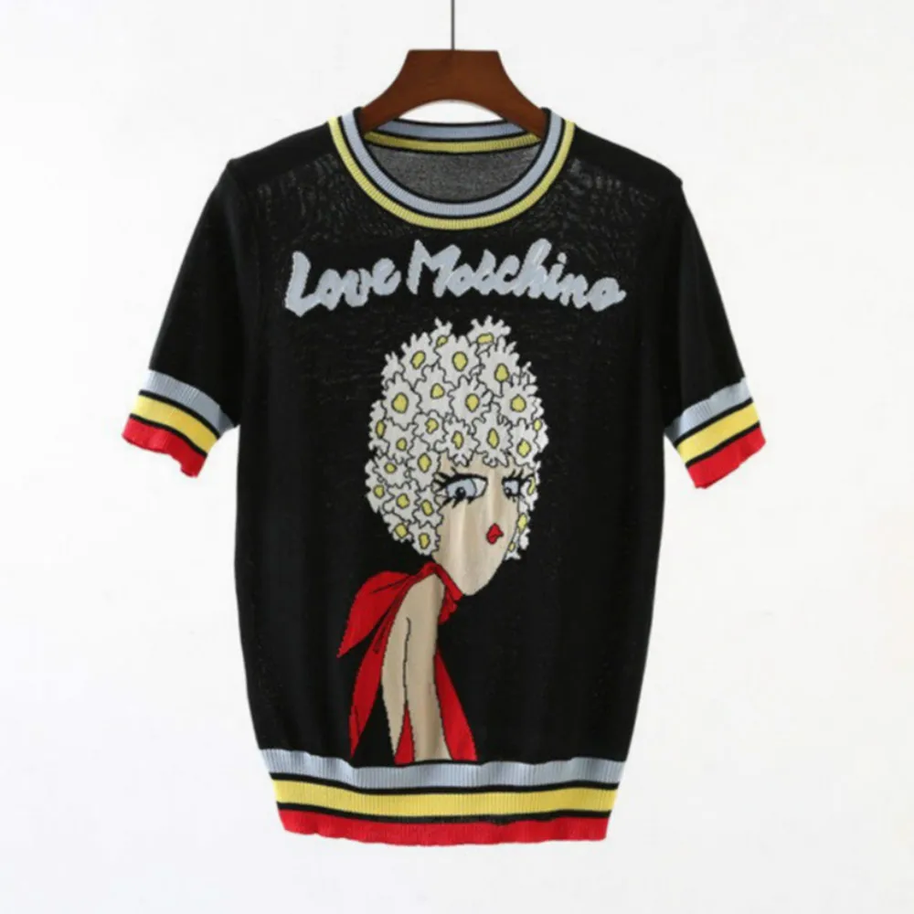 Promo New Women's Tops Jacquard Lovely Girl Letters Short Sleeve Pullover 2019 Summer Female Knitted Stri